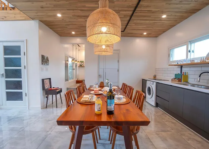 Situated approximately a 10-minute drive from Raon Zoo, the 1-bedroom Jeju Love Stay Mint villa features a terrace with views of the courtyard. Offering a swimming pool, the accommodation invites guests to visit Jeju Glass Castle Theme Park, located around 6 km away.
